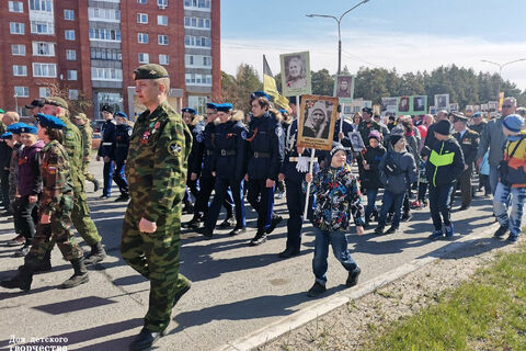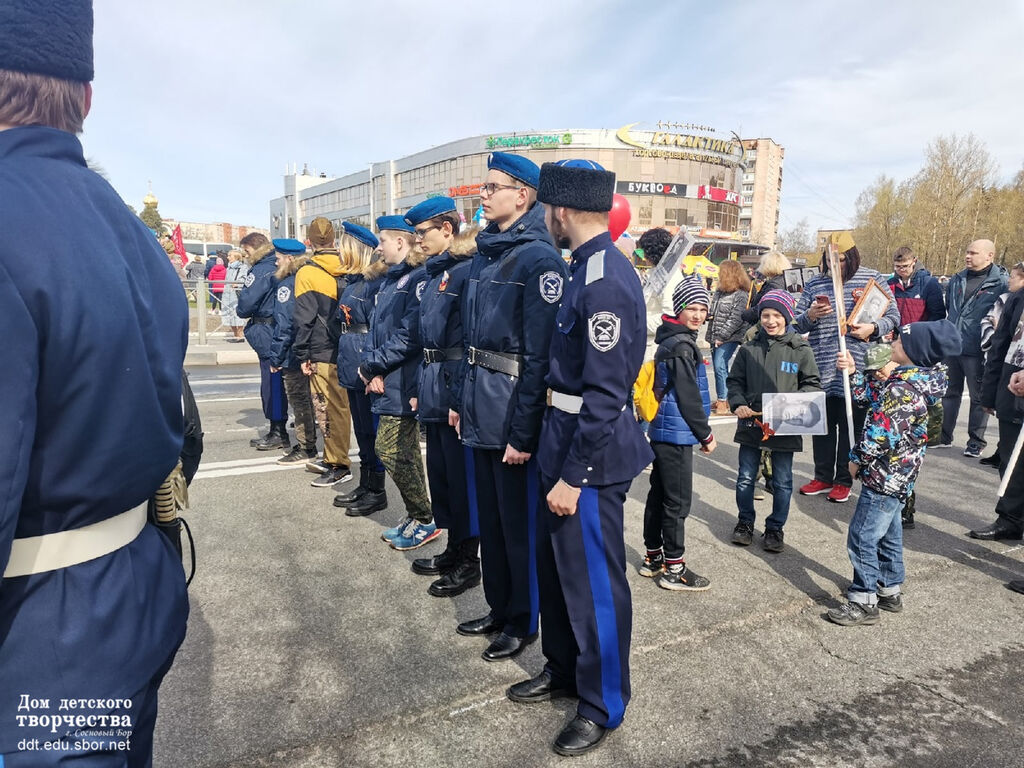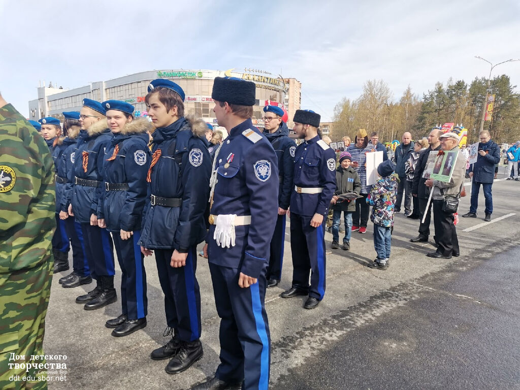 9 мая обучающиеся патриотических объединений Дома детского творчества ("Дружина" и казачий кадетский класс им. Б.П. Крмарова) приняли участие во Всероссийской акции "Бессмертный полк".