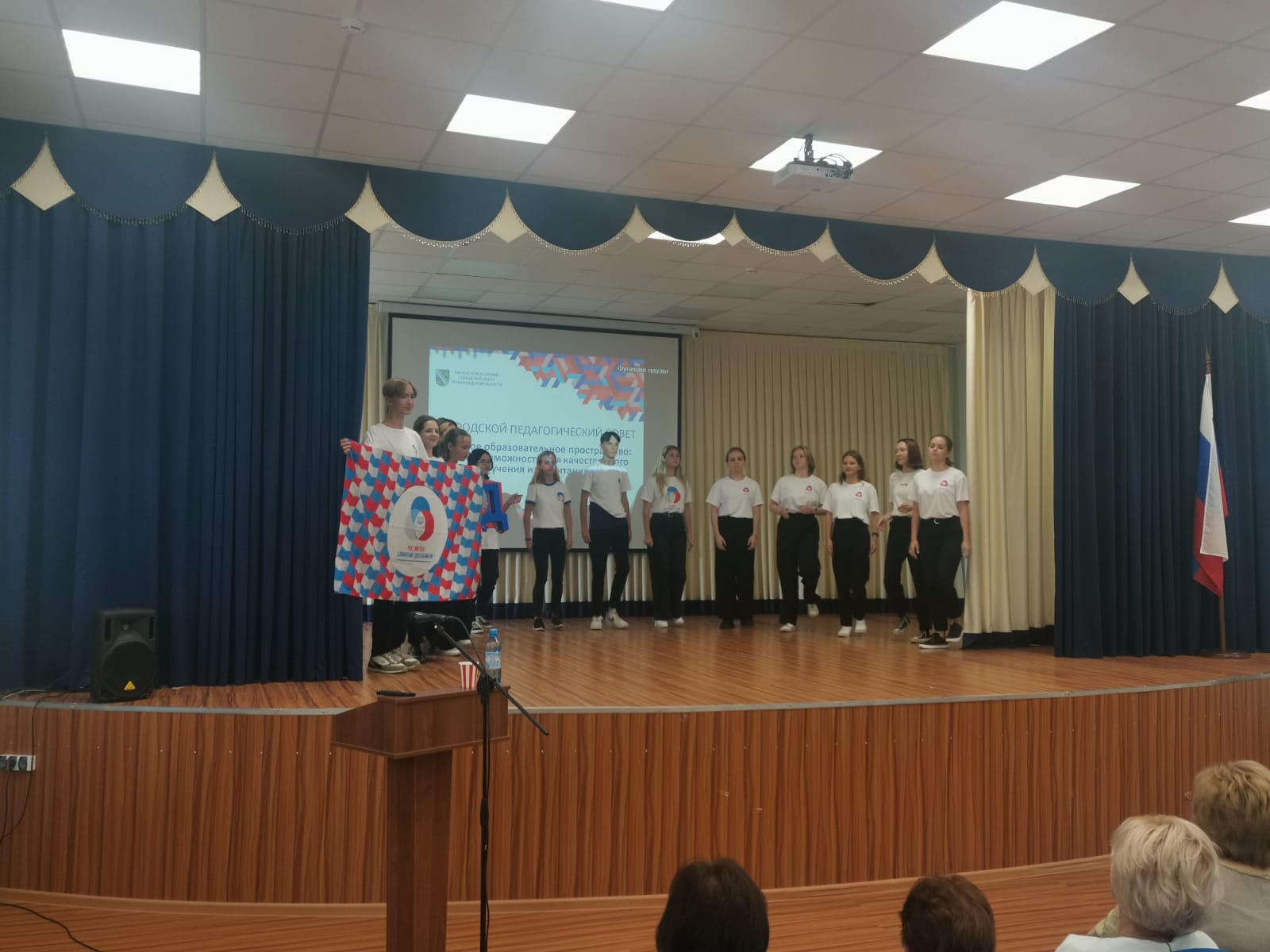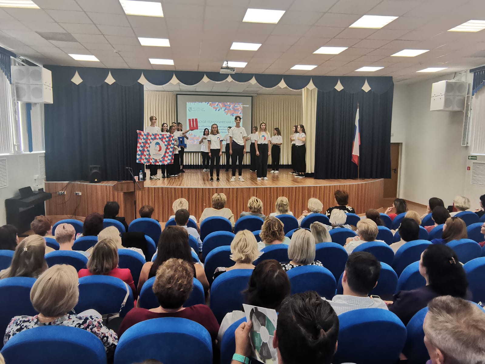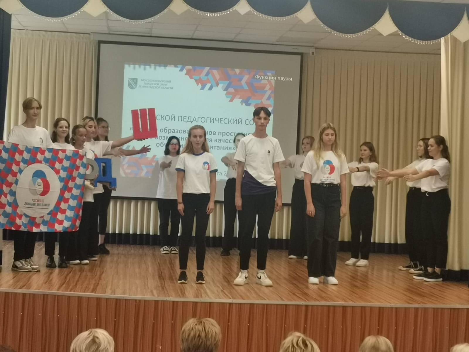 29 августа в МБОУ "СОШ №2 им. Героя РФ А.В. Воскресенского" состоялся городской педагогический совет "Единое образовательное пространство: новые возможности для качественного обучения и воспитания". Дом детского творчества представили педагоги и активисты Российского движения школьников.