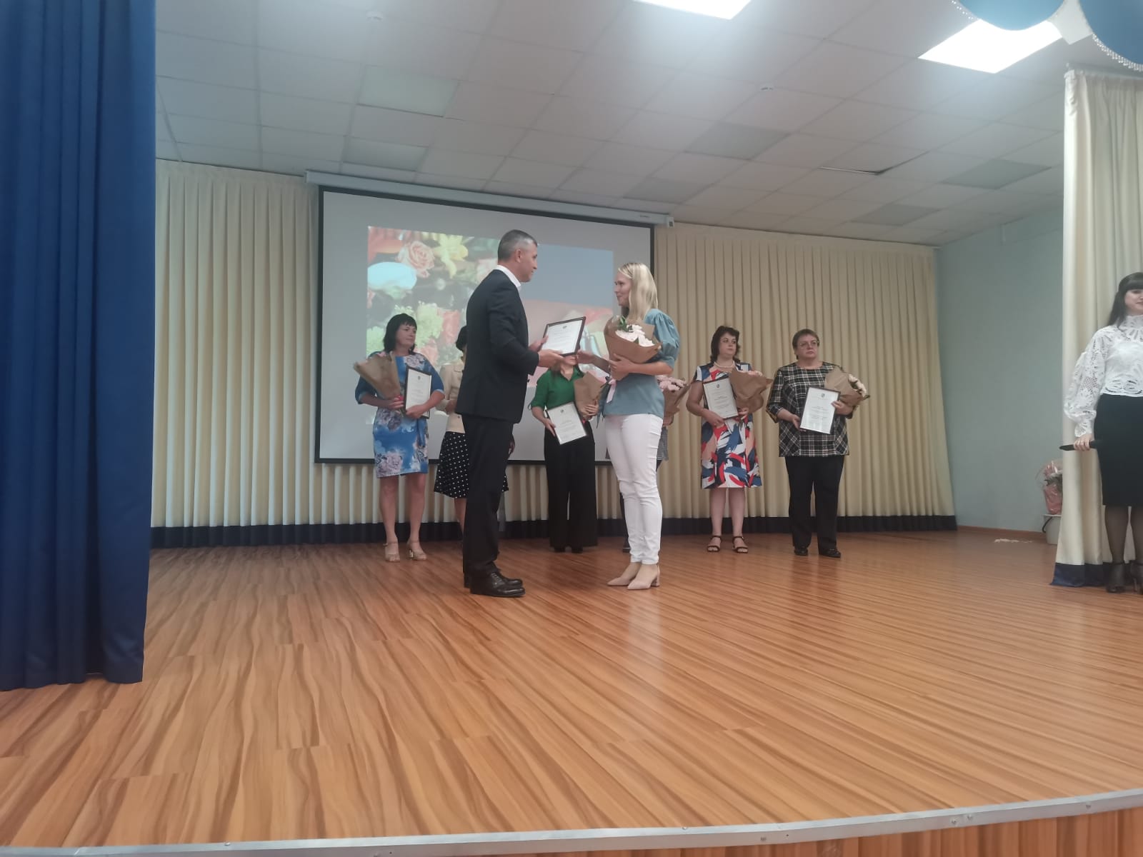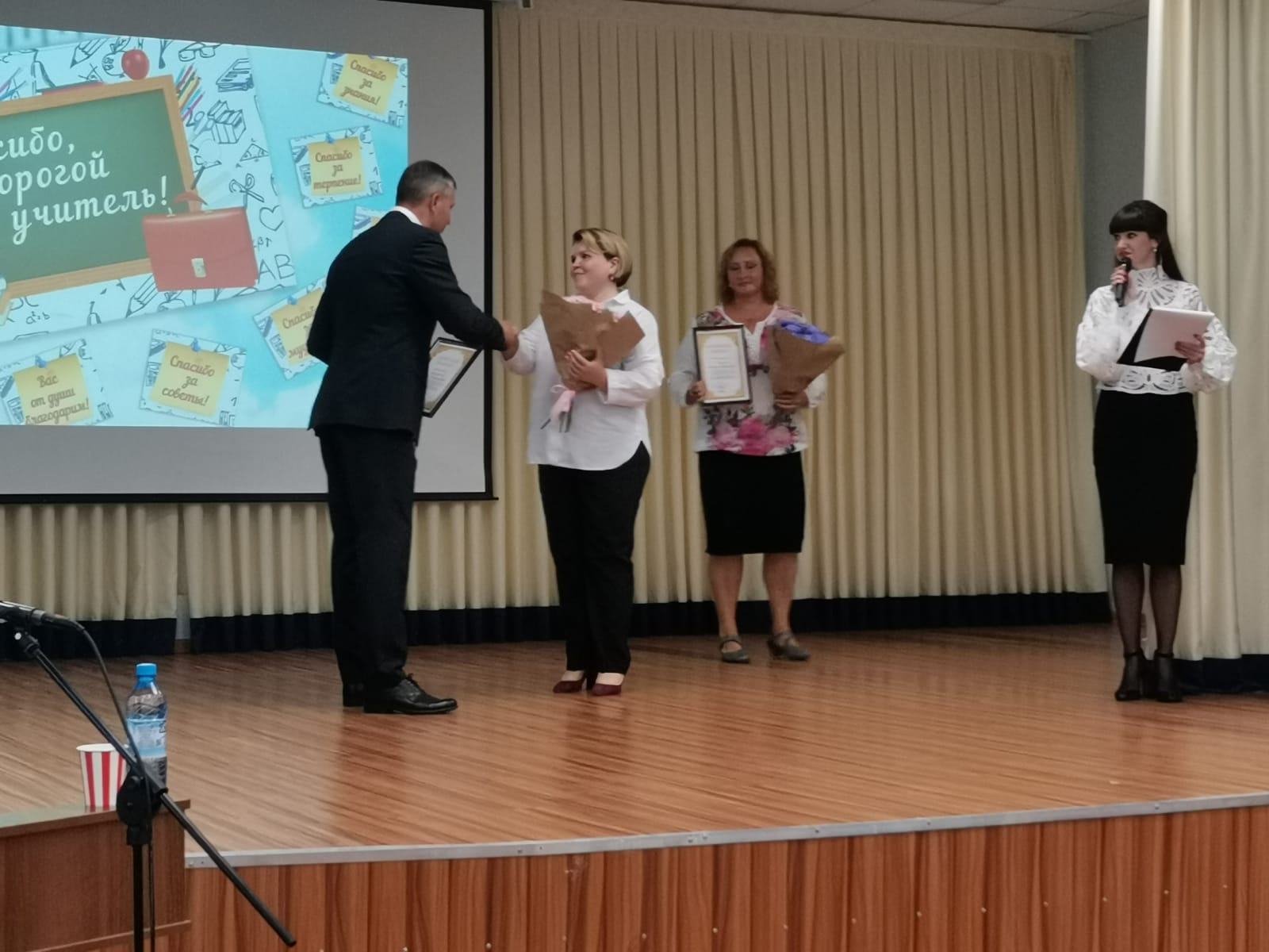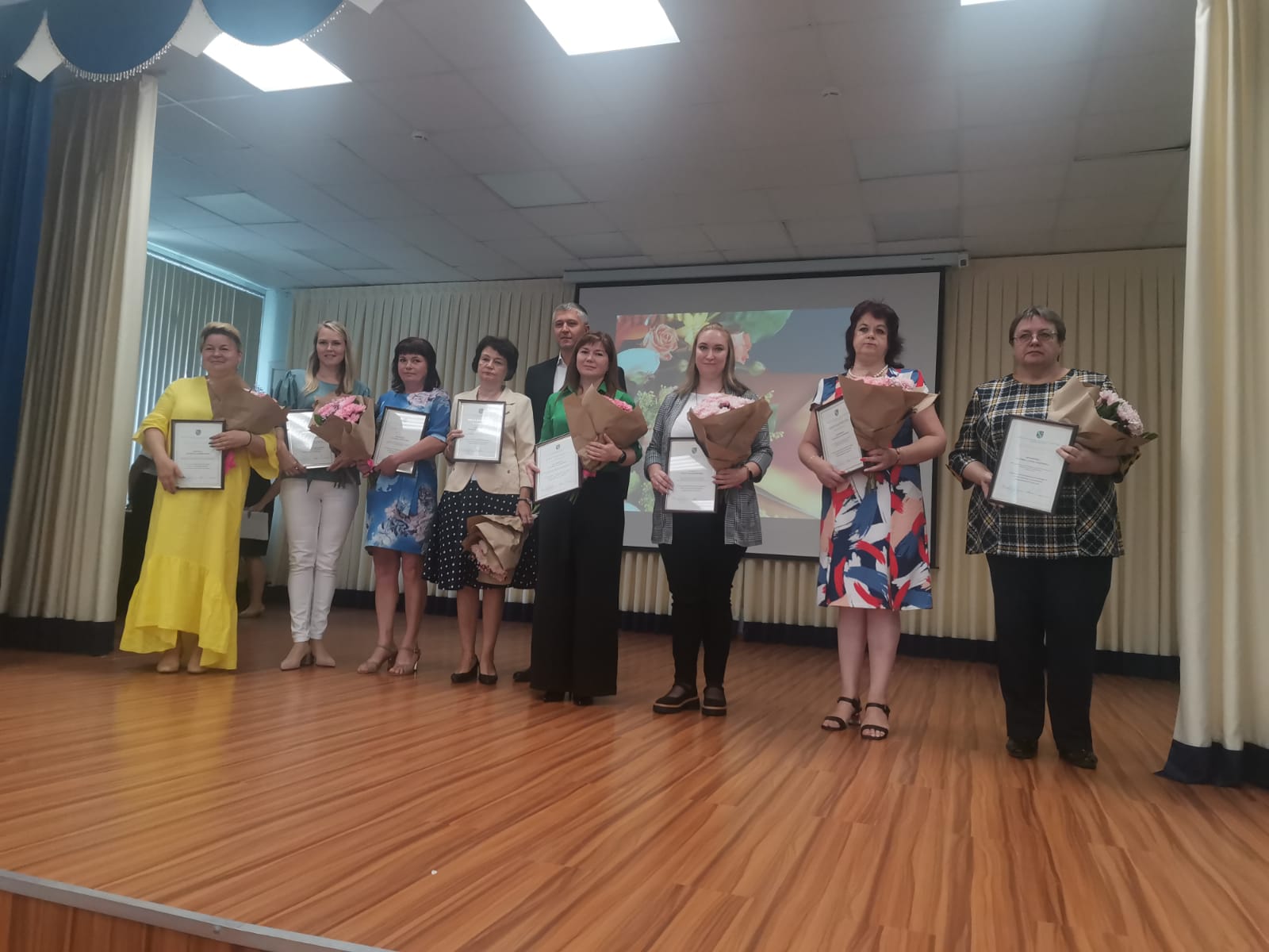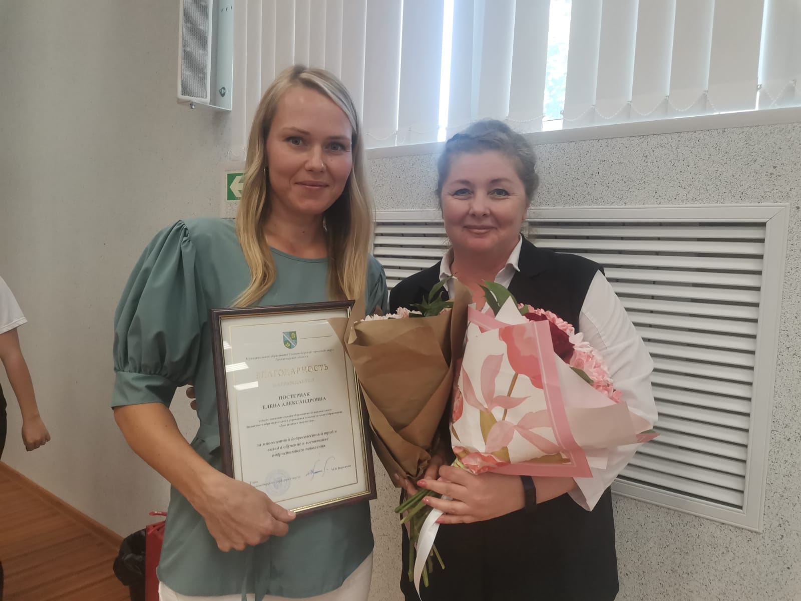 Глава Сосновоборского городского округа Воронков Михаил Васильевич поздравил педагогов. Ведерникова Ольга Владимировна была награждена почетной грамотой Министерства Просвещения, а Постернак Елена Александровна благодарностью главы Сосновоборского городского округа.
