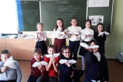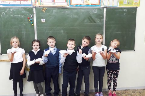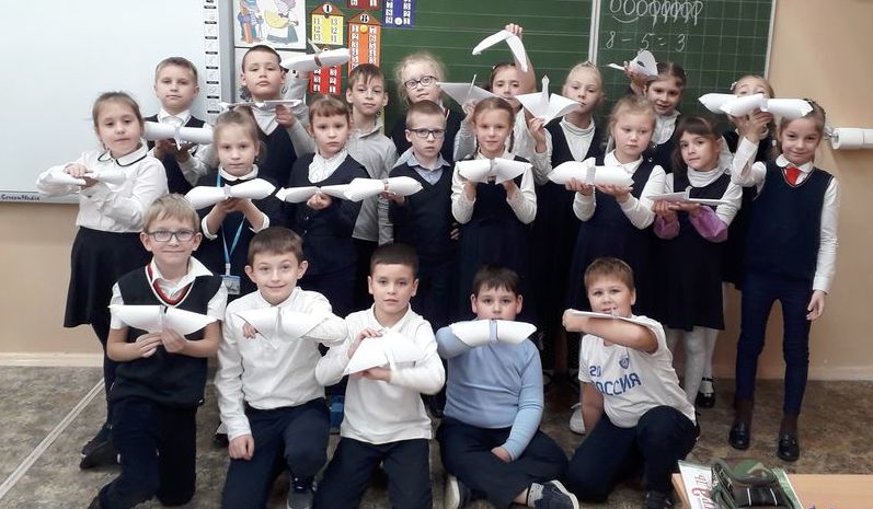 Ребята изготовили из бумаги фигурки белых журавлей и вручили их своим родственникам и друзьям, чтобы напомнить о необходимости соблюдения правил дорожного движения.