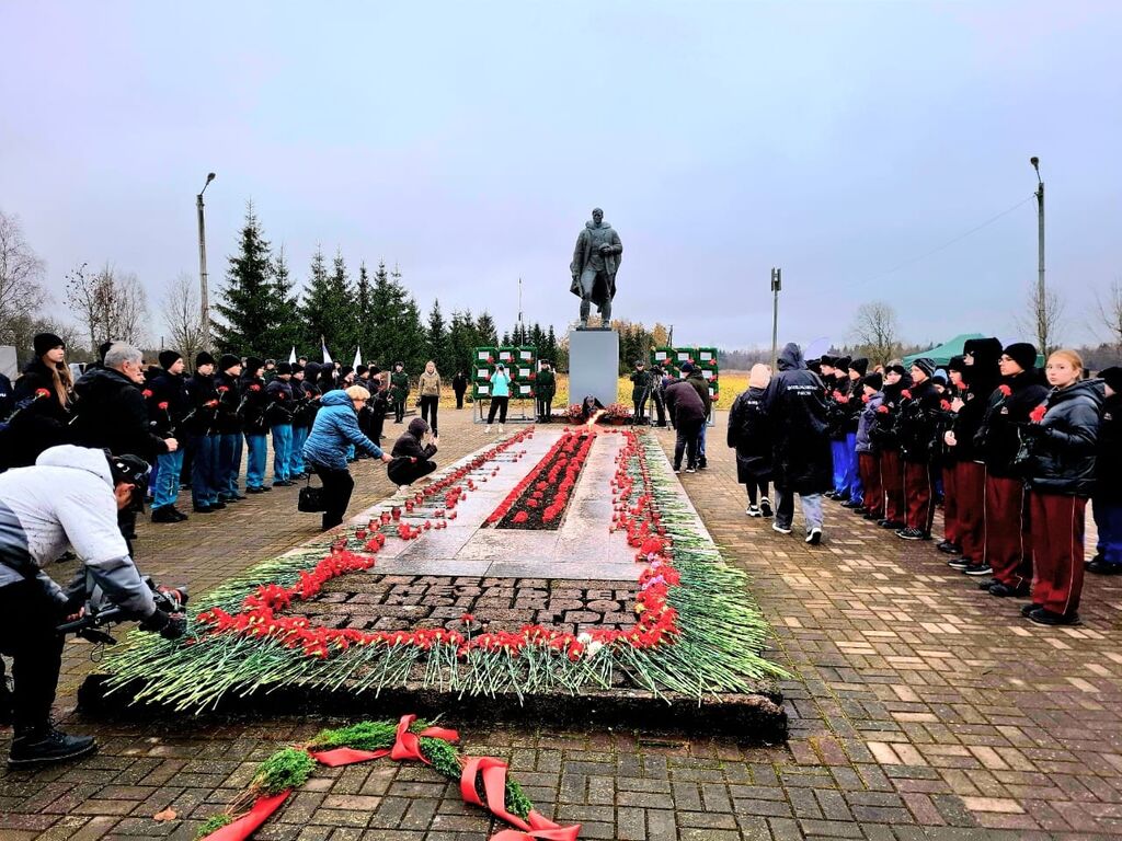 31 октября воспитанники казачьего кадетского класса им. Б.П. Крамарова и педагоги ДДТ Лебедев Владимир Михайлович, Лютова Ирина Николаевна и Соколова Валентина Евгеньевна приняли участие в торжественно-траурной акции "День памяти сожженных деревень Ленинградской области".