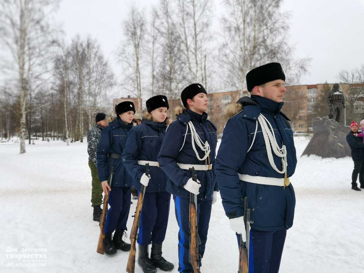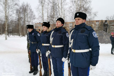 15 февраля - День памяти воинов-интернационалистов и 32-годовщина вывода советских войск из Афганистана. В честь этого события 13 февраля у "Мемориала воинам-интернационалистам" прошел торжественно-траурный митинг, на котором приняли участие в качестве почетного караула воспитанники казачьего кадетского класса им. Б.П. Крамарова (педагог: Лебедев Владимир Михайлович).