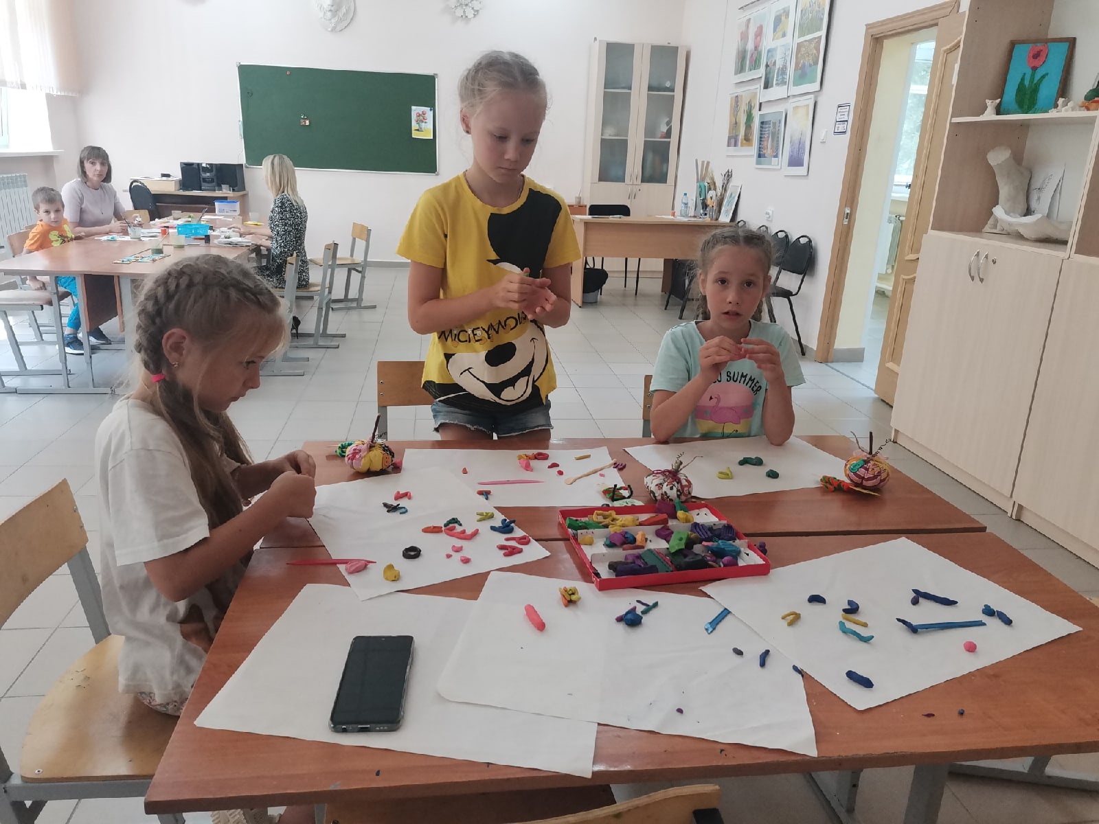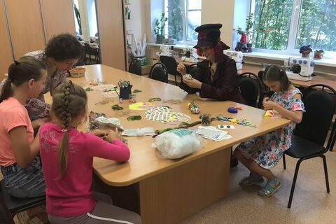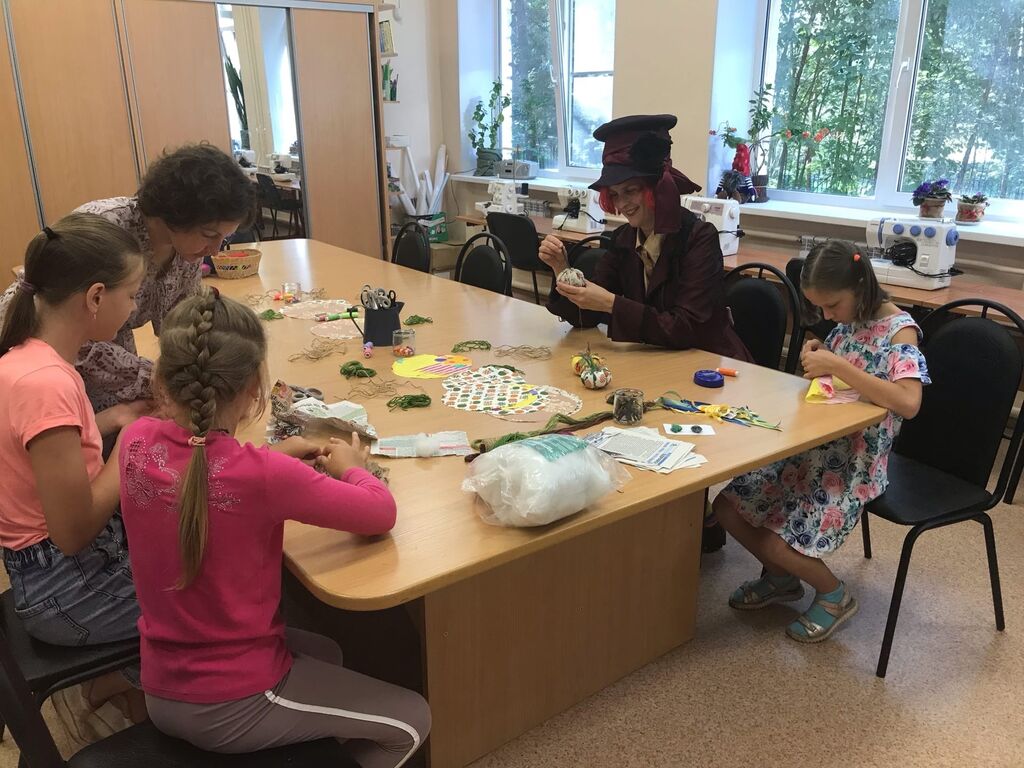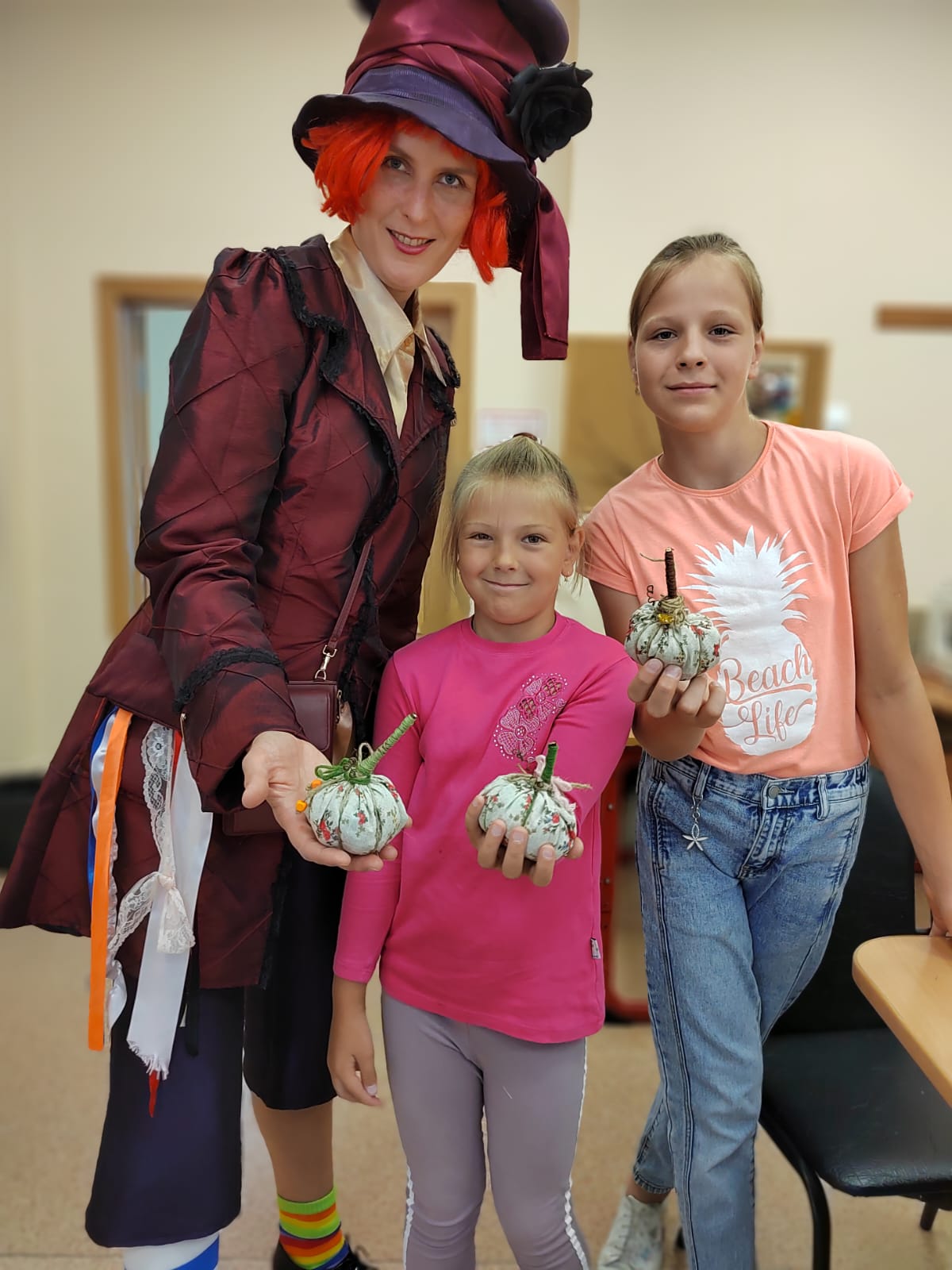Больше всего мастер-классов было на Комсомольской, 2а. Вот уж где можно было разгуляться. С Лютовой Ириной Николаевной ребята создали живописные магнитики, со Струтинской Анной Валерьевной сшили тыковку-игольницу, с Тюкиной Татьяной Андреевной сделали очень эмоционального зайчика, а с Кузнецовой Ириной Николаевной сняли свой первый мультипликационный этюд из своего имени, вылепленного из пластилина. Развлекали и играли с ребятами Незнайка (педагог: Николаева Юлия Михайловна) и Шляпник (педагог: Мухина Анна Александровна).