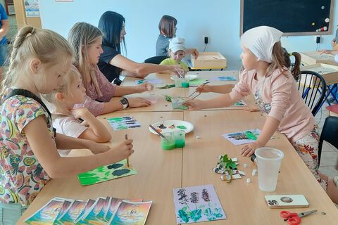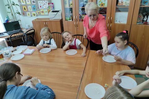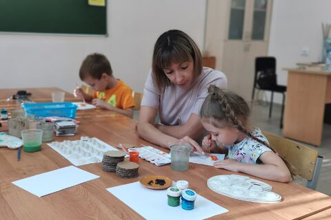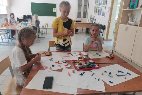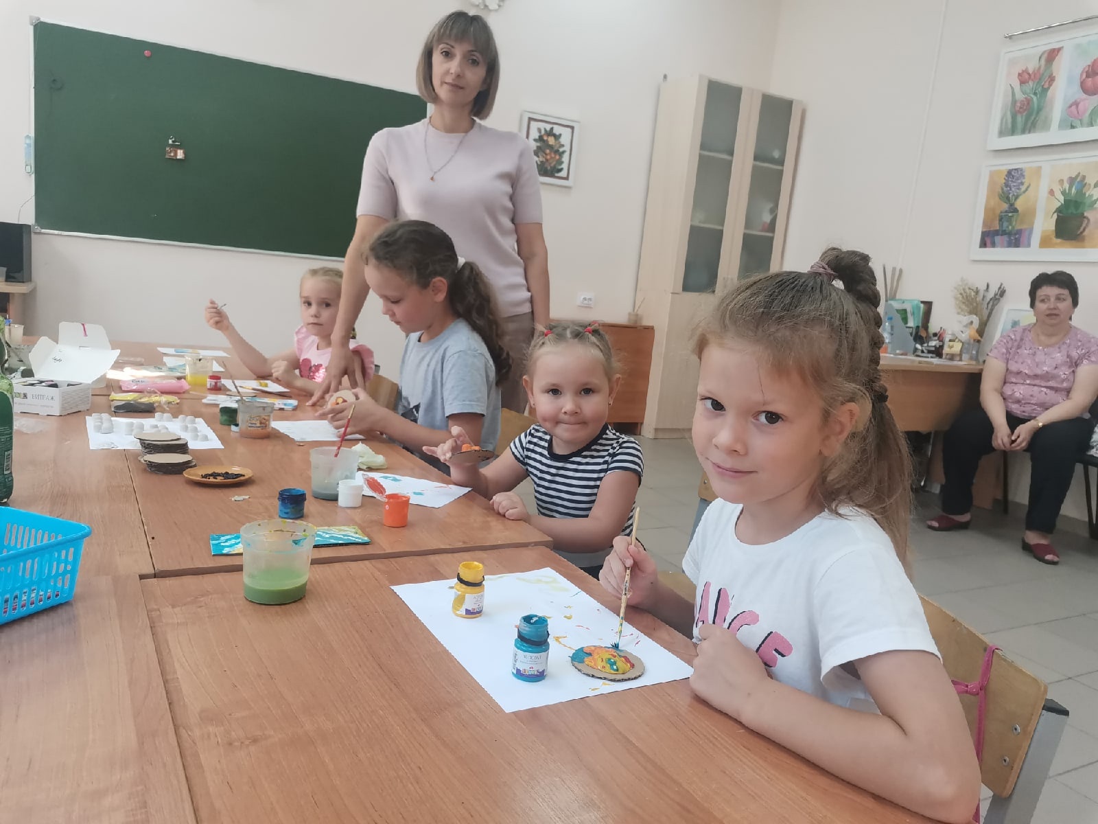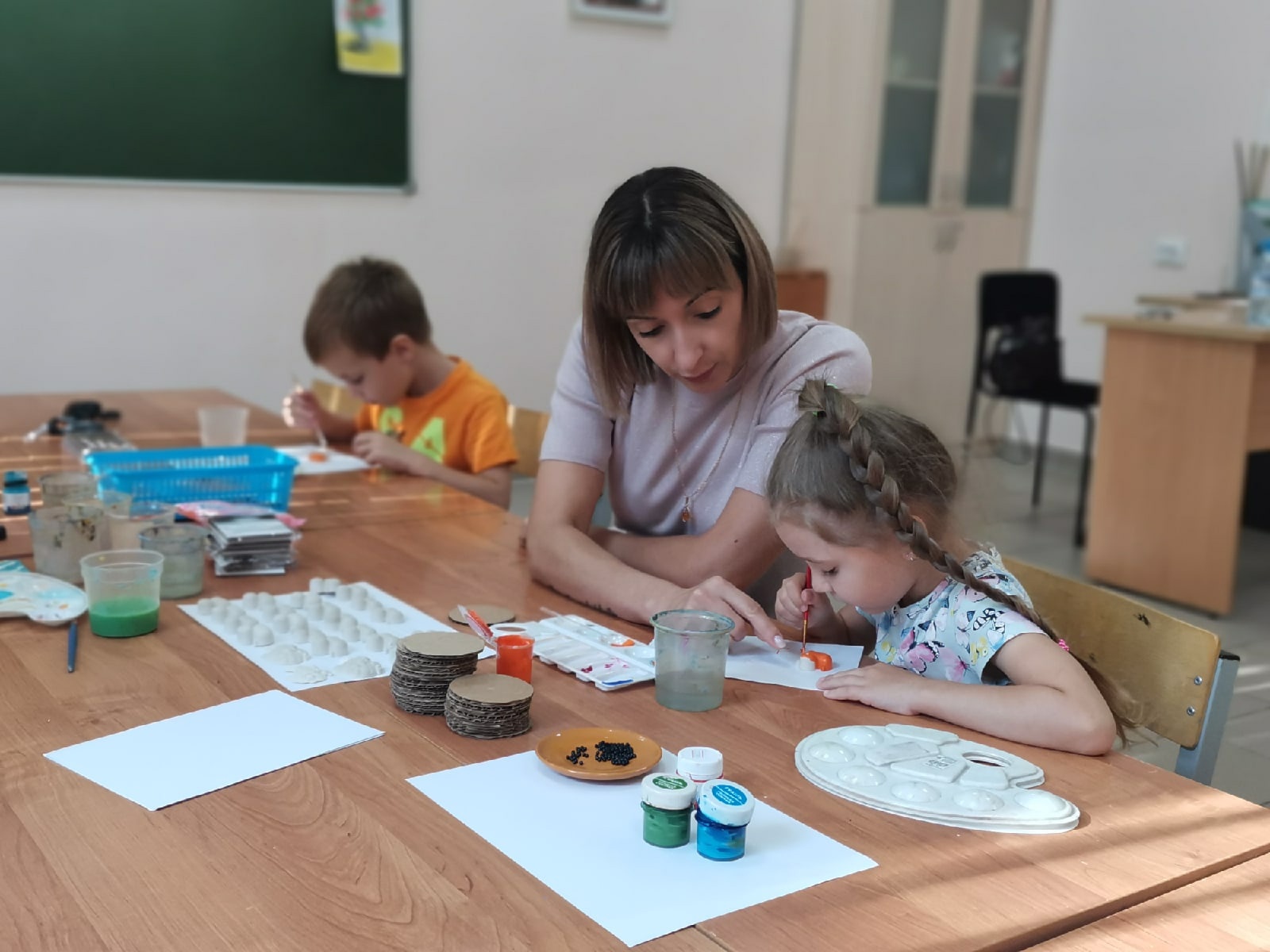 Больше всего мастер-классов было на Комсомольской, 2а. Вот уж где можно было разгуляться. С Лютовой Ириной Николаевной ребята создали живописные магнитики, со Струтинской Анной Валерьевной сшили тыковку-игольницу, с Тюкиной Татьяной Андреевной сделали очень эмоционального зайчика, а с Кузнецовой Ириной Николаевной сняли свой первый мультипликационный этюд из своего имени, вылепленного из пластилина. Развлекали и играли с ребятами Незнайка (педагог: Николаева Юлия Михайловна) и Шляпник (педагог: Мухина Анна Александровна).