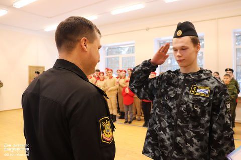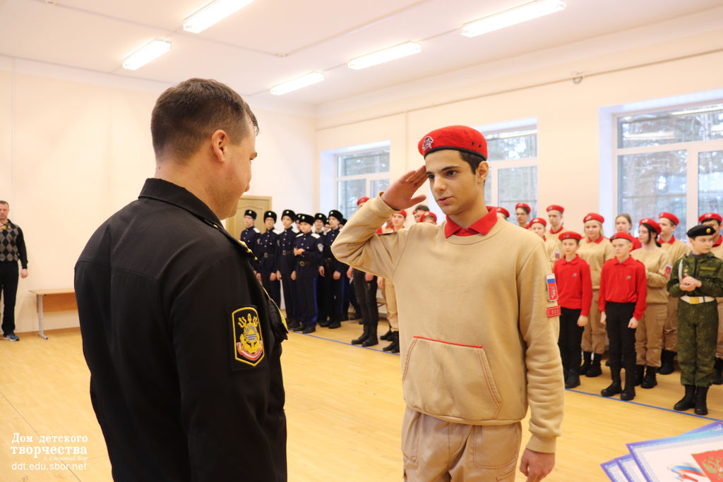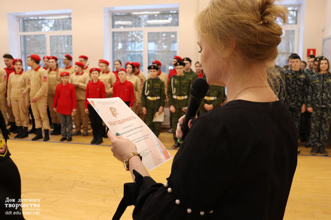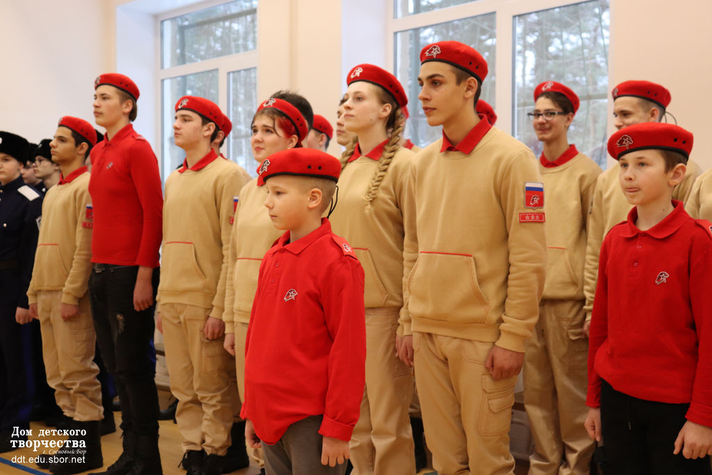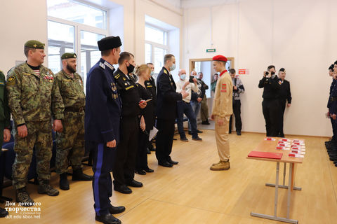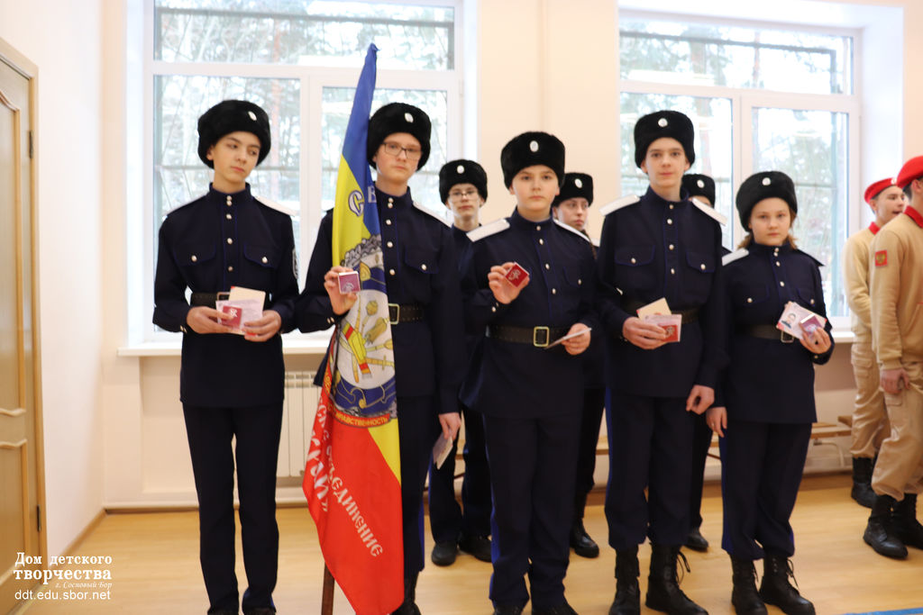В рамках слета прошла торжественная церемония принятия юнармейской присяги. В Юнармию вступали воспитанники отрядов "Патриот", "Гвардия" и казачьего кадетского класса им. Б.П. Крамарова. Им были вручены юнармейские значки, удостоверения и книжки.