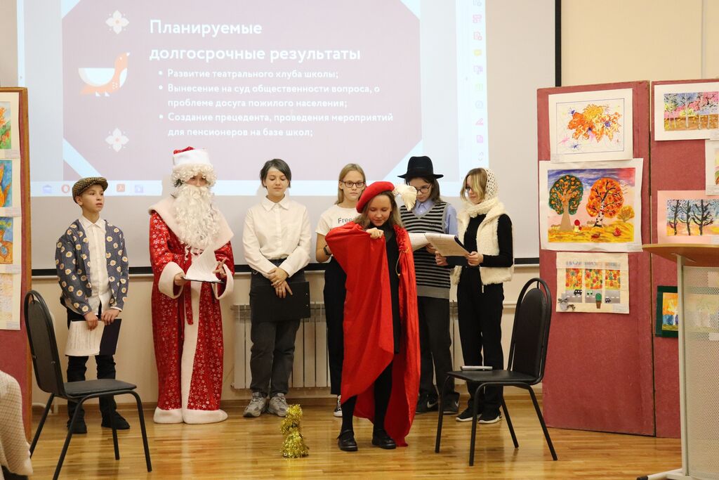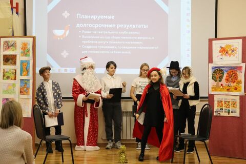 - МБОУ «СОШ №2 им. Героя РФ А.В.Воскресенского» - социальный проект «К нам едет Новый год!». Цель проекта - сделать театральный волонтерский проект к новому году для пожилых горожан используя средства школьного театра.