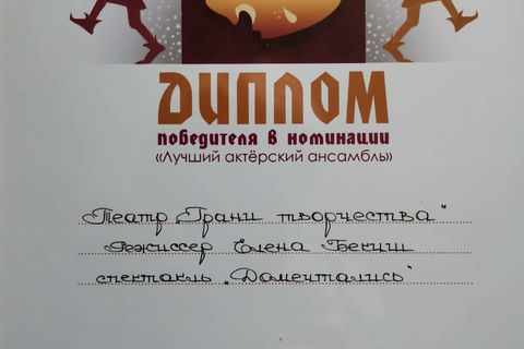 - Диплом победителя в номинации «Лучший актёрский ансамбль»;