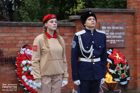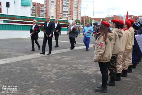 Почетные гости, участники велопробега и юнармейцы возложили цветы к Могиле Неизвестного солдата и почтили память всех погибших в Великой Отечественной войне минутой молчания.