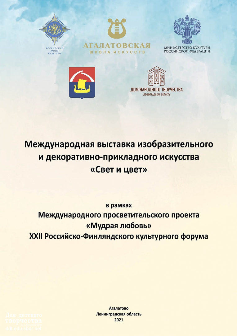 Подведены итоги международной интернет-выставки изобразительного и декоративно-прикладного искусства «Свет и цвет» в рамках международного проекта «Мудрая любовь», которую проводила Агалатовская школа искусств, при поддержке Российского фонда культуры и Государственного бюджетного учреждения культуры Ленинградской области «Дом народного творчества». Партнёр проекта – отделение общества «Финляндия – Россия» г. Хаапавеси (Финляндия).