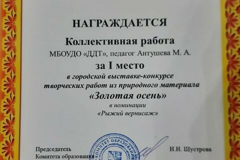 С 11 по 29 октября в МБОУДО «ЦРТ» проходила Городская выставка-конкурс творческих работ из природного материала «Золотая осень», в которой участвовали педагоги и дети из Дома детского творчества.