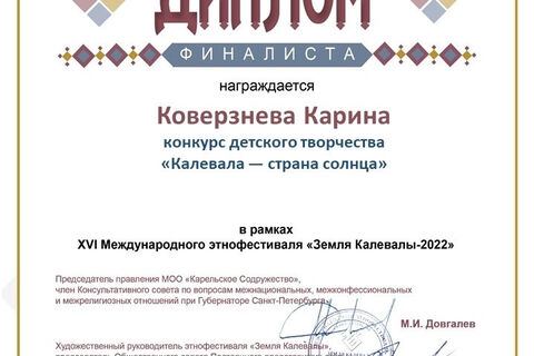 Ребята из детского объединения "Колибри" (педагог: Лютова Ирина Николаевна) приняли участие в конкурсной, научно-деловой и творческой программе этнофестиваля «Земля Калевалы», приуроченного к Году народного искусства и нематериального культурного наследия народов России.