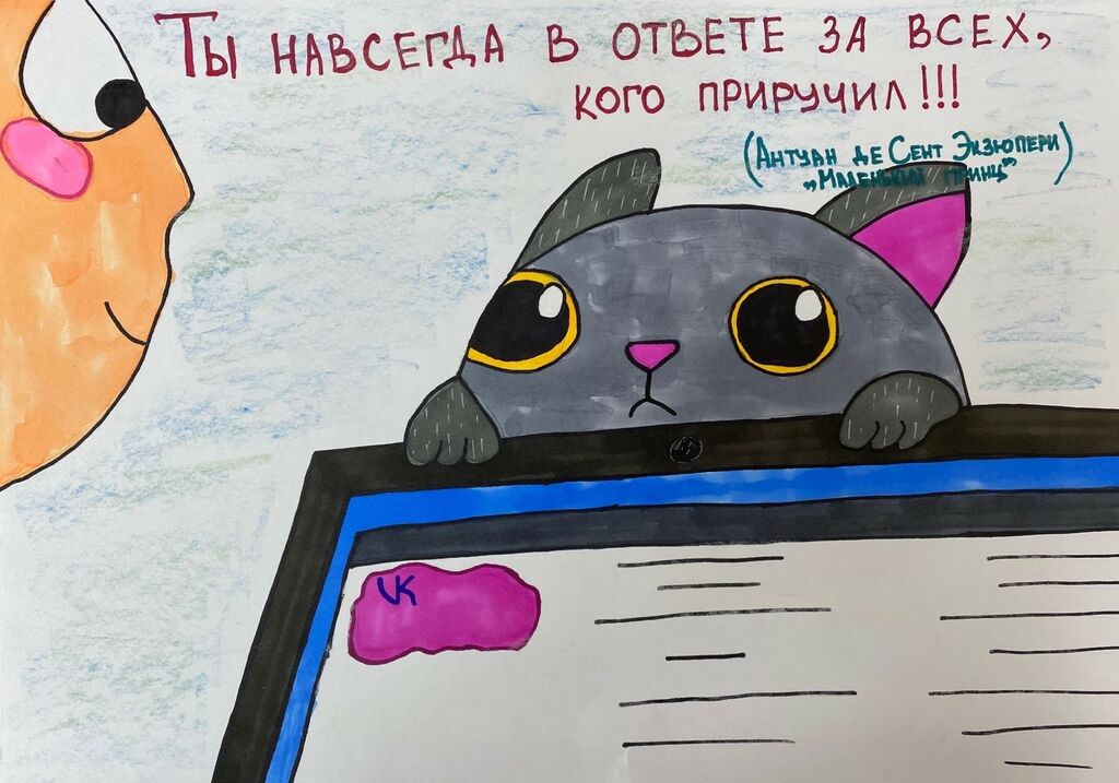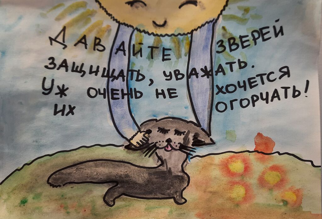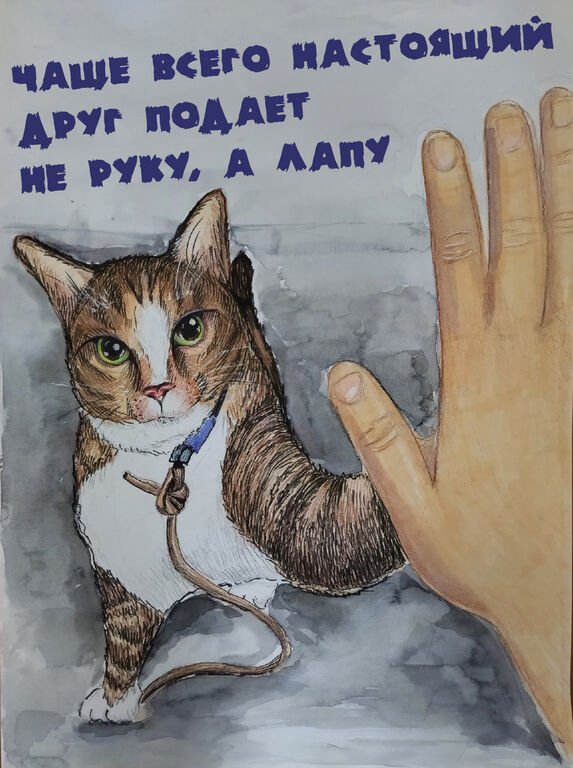 - Победитель: Маркова Полина, МБОУ "СОШ №7", педагог: Ляпина Оксана Александровна, работа: "Чаще всего настоящий друг подает не руку, а лапу";