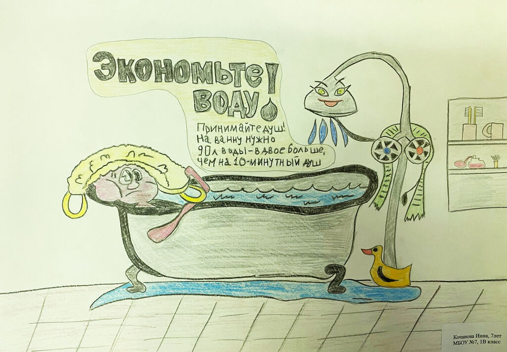 - Призер: Кочанова Инна, МБОУ "СОШ №7", педагог: Бормотова Виктория Васильевна, работа "Экономьте воду!";