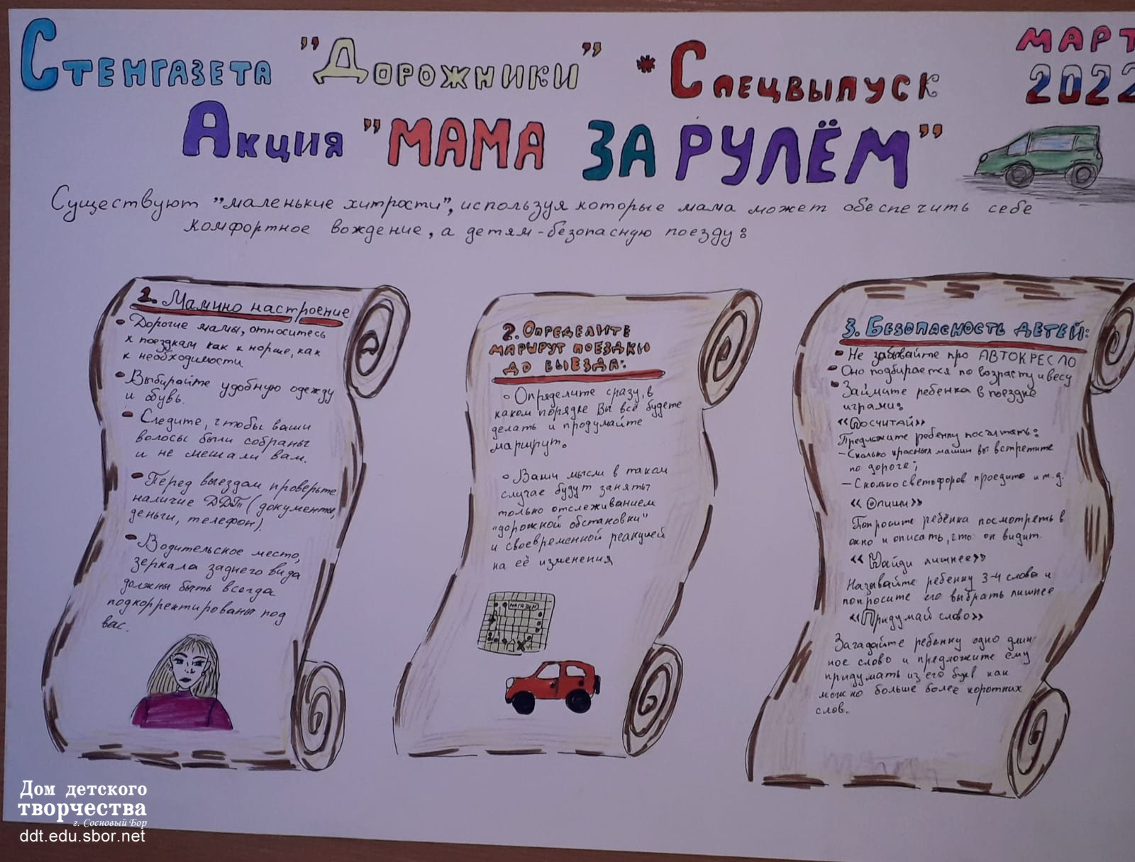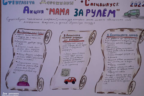 А ребята, занимающиеся по программе наставничества "Моё будущее-отряд ЮИД" подготовили стенгазету с полезной информацией для мам- водителей, чтобы поездка стала не только комфортной, но и безопасной. Стенгазета размещена в школе.