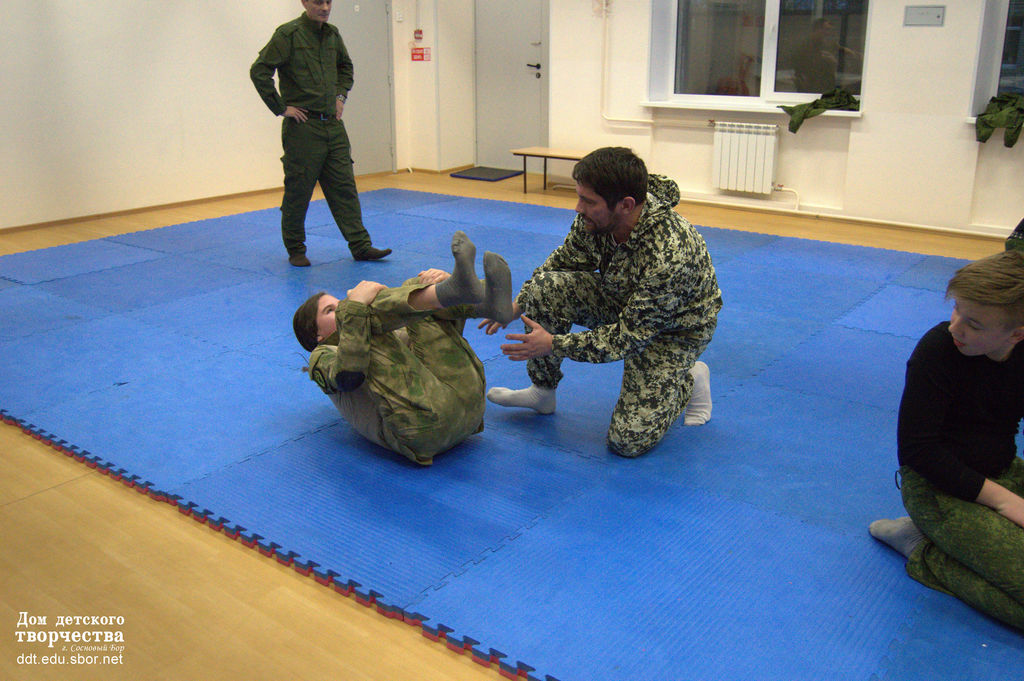 На занятиях по боевой акробатике изучили правила самостраховки и безопасного падения в различных условиях.