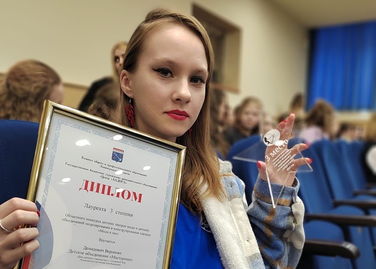 31 марта Демидович Вероника обучающаяся детского объединения «Мастерицы» (педагог Струтинская Анна Валерьевна) приняла участие в Областном конкурсе детских театров моды и детских объединений моделирования и конструирования одежды «Мода и мы» в ГБУ ДО «Центр «Ладога». В конкурсе приняли участие 11 коллективов из учреждений дополнительного образования Ленинградской области.