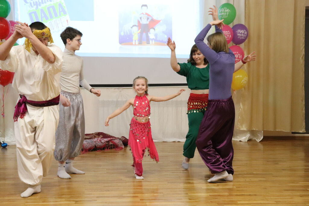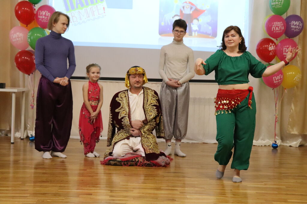 Первое - "Визитка", за 5 минут предстояло рассказать о себе, о своей семье, о традициях семьи. Второе задание - творческое. С какой гордостью и с каким желанием дети помогали папам выполнить это испытание! Сценки, декорации для которых были сделаны своими руками, лиричные песни и стихи, которые заставили всех зрителей затаить дыхание, спортивное состязание, в котором сын и папа показали богатырскую удаль, русская плясовая, которую исполнили всей семьей, турецко-индийский сериал по собственному сценарию! Третье задание - экспромт. Папам пришлось продемонстрировать и свою силу, и знание современных мультфильмов, и умение за пять минут построить дом из пластилина, сложить корабль из бумаги, спеть вместе с дочкой колыбельную и заставить весь зал танцевать.