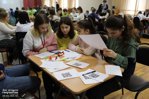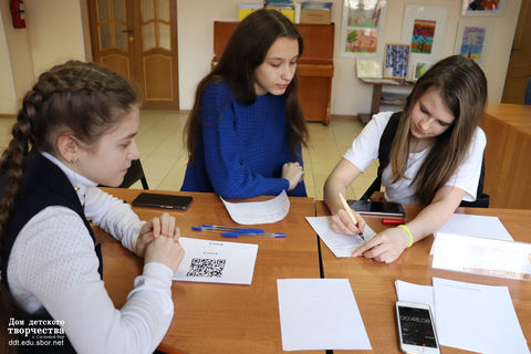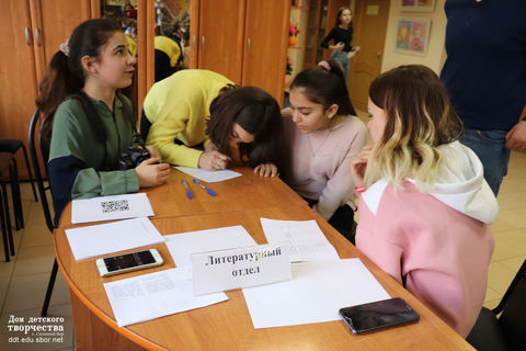 Квест состоял из семи станций: литературный отдел, информационный отдел, отдел рекламы, фотоотдел, креативный отдел, занимательный отдел и отдел оформления. На каждой из этих станций ребята должны были выполнить интересное задание, например, из трех слов составить как можно больше предложений, придумать подписи к интересным фотографиям, из одного слова составить как можно больше слов, придумать русские синонимы иностранным часто употребляемым в молодежной среде словам, из басни Крылова сделать заметку. По итогам выполнения заданий участникам квеста выдавался QR - код, где были рекомендации по созданию первой полосы школьной газеты. Их задача была собрать первую полосу, как пазл.