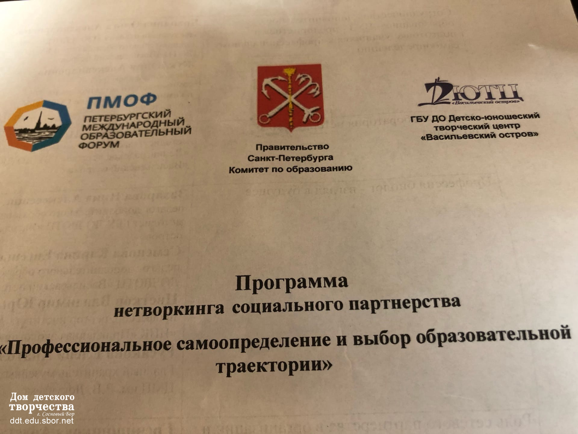 24 марта методист Дома детского творчества Коврыга Наталья Ильинична приняла участие в образовательном мероприятии «Нетворкинг социального партнёрства «Профессиональное самоопределение и выбор образовательной траектории», в рамках работы Петербургского международного образовательного форума, на котором ГБУ ДО ДЮТЦ « Васильевский остров» представлял опыт работы и своих социальных партнёров в деятельности, способствующей самоопределению школьников.