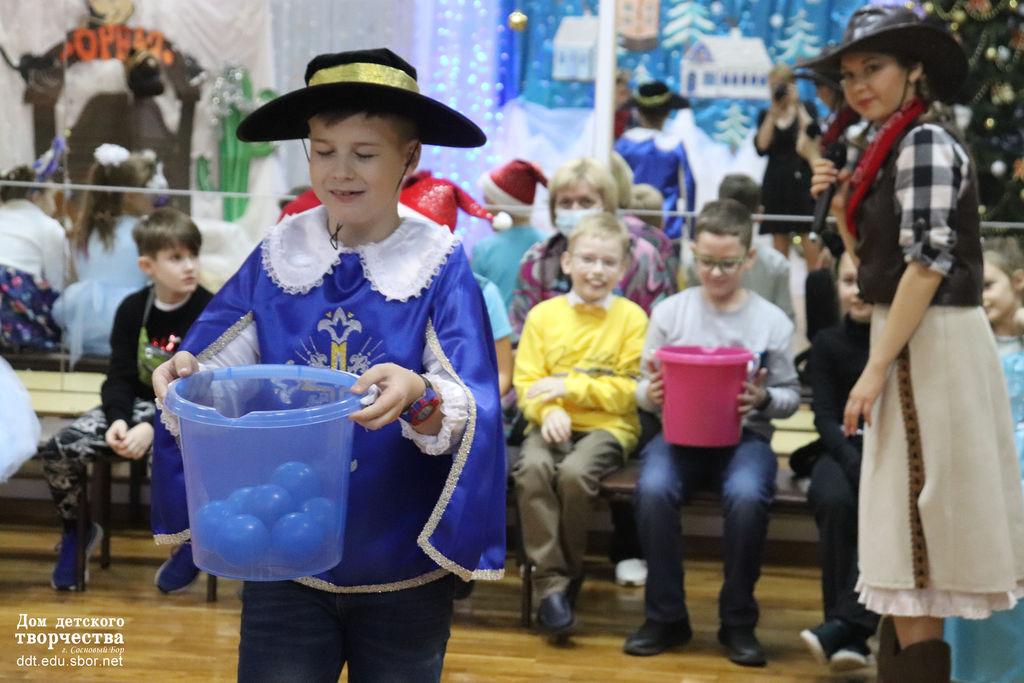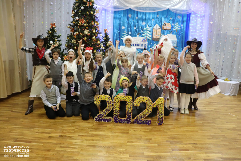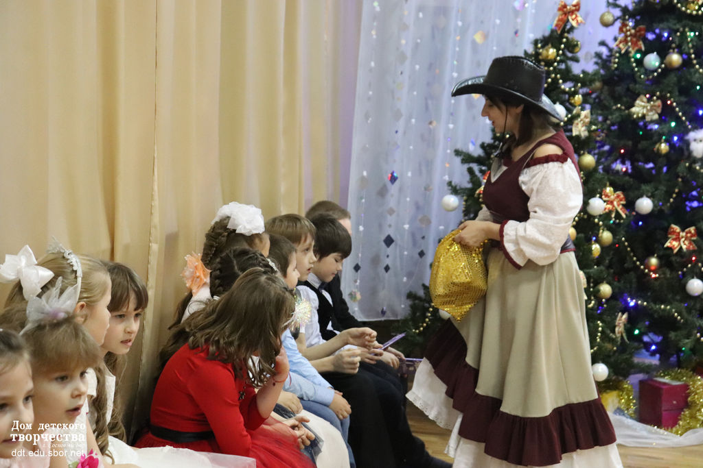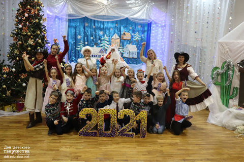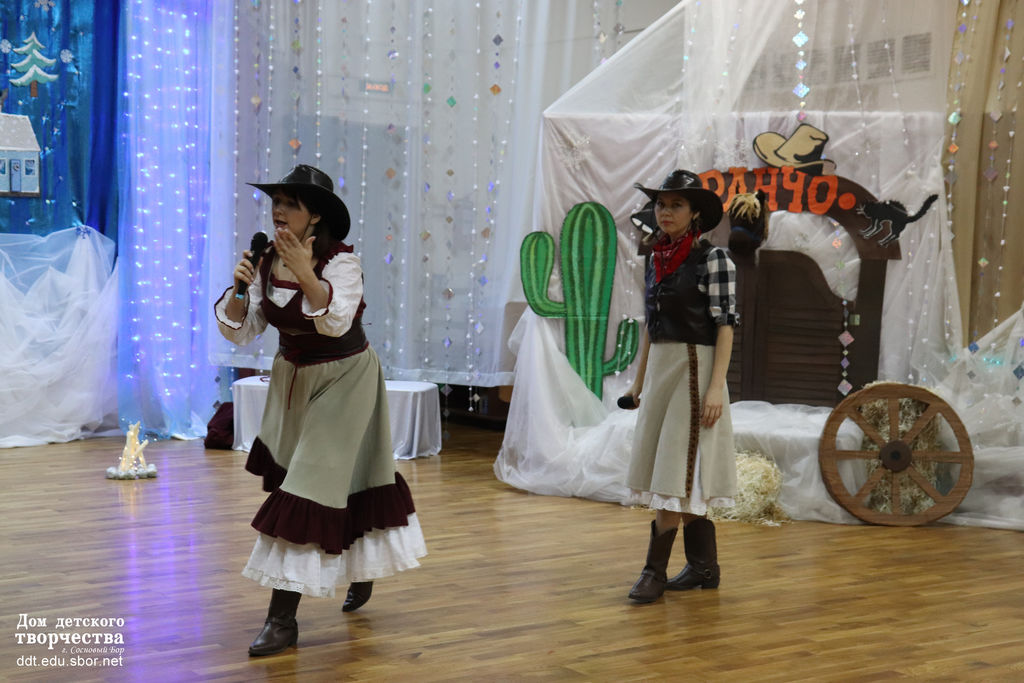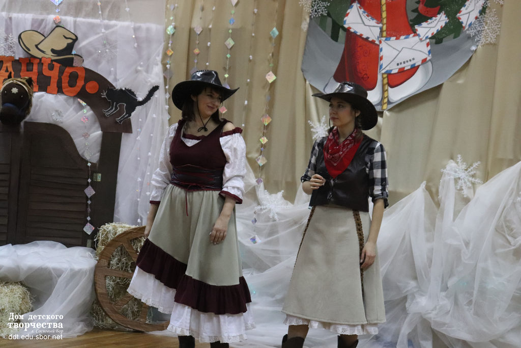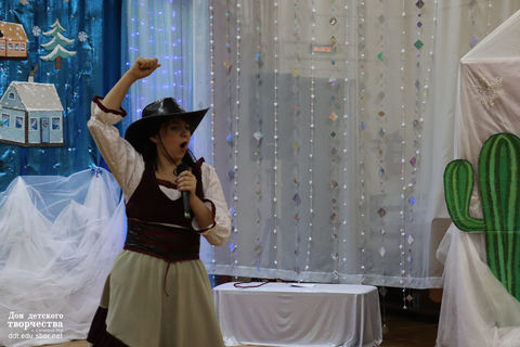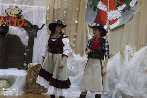 В Доме детского творчества прошли новогодние праздники. Более 500 девчонок и мальчишек из начальной школы окунулись в мир Дикого Запада, побывали на ранчо у ковбоев Кети Звоночек и Мери Дикая Кошка.