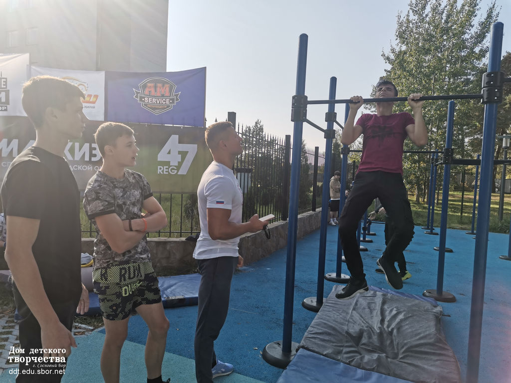 Все показали отличные результаты, а Илья Тиханов занял первое место в двоеборье в возрастной категории до 18 лет, подтянувшись 20 раз и отжавшись 99 раз. В этом году в мероприятии присутствовали гости из Ленинградской области, Красного Села, из Псковской области, Струги Красные, из Санкт-Петербурга!