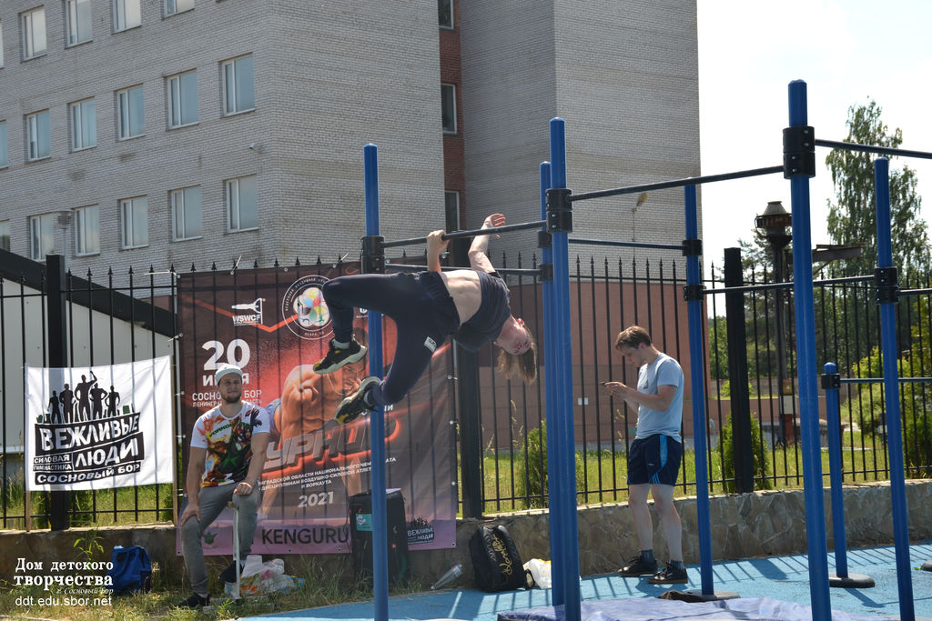 20 июня юнармейцы отряда "Патриот" Тиханов Илья, Туаев Дмитрий, Большаков Даниил и Мацута Егор приняли участие в отборочном турнире национального чемпионата по дисциплинам воздушно-силовой атлетики и Воркаута - 2021, которое прошло на Спортивном кластере ЛАЭС. По дисциплинам: Воркаут-фристайл, Воркаут-двоеборье. Места, к сожалению, не заняли, так как были суперсильные соперники из всей Ленобласти.