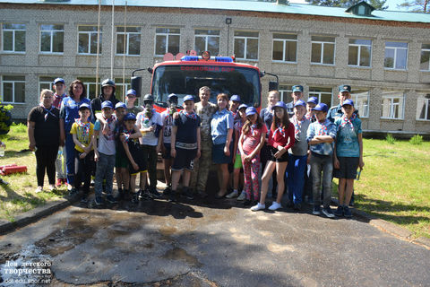 3 день: в этот день 1 отряд ушел на экологическую тропу, а 2 отряд отправился на встречу с представителем скорой помощи Страховой Светланой Юрьевной и целым пожарным отрядом. Светлана Юрьевна рассказала ребятам, как помочь себе и своим близким, если возникают случаи, когда нужна первая помощь. А пожарный отряд на практике показал детям, как работать с огнетушителем и пожарным шлангом. Ребята смогли посидеть в пожарной машине и надеть на себя костюм пожарного.