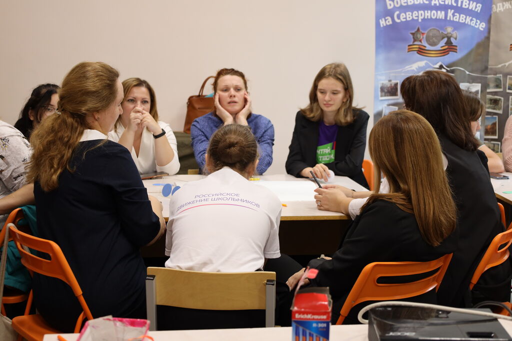 Всем участникам было предложено принять участие в деловой игре. В состав команд рандомно вошли и педагоги, и дети. Хотя сам процесс формирования команд тоже стал игровым элементом. На стратегической сессии наши участники узнали о роли Российского движения детей и молодежи и приняли участие в разработке предложений в рамках Всероссийского конкурса соавторов нового движения страны.