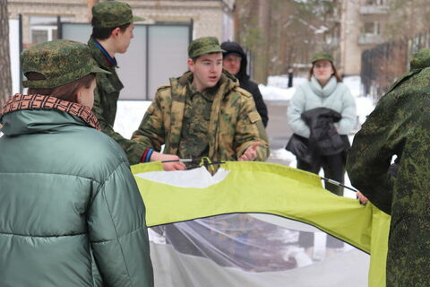 - В тактической игре на местности "Дорога победителей" участники применили свои умения и навыки в военном деле (определение азимута, команды "Воздух", "Газы", "Минная опасность", обезвреживание диверсионно-разведывательной группы противника, оказание первой медицинской помощи, транспортировка раненого).