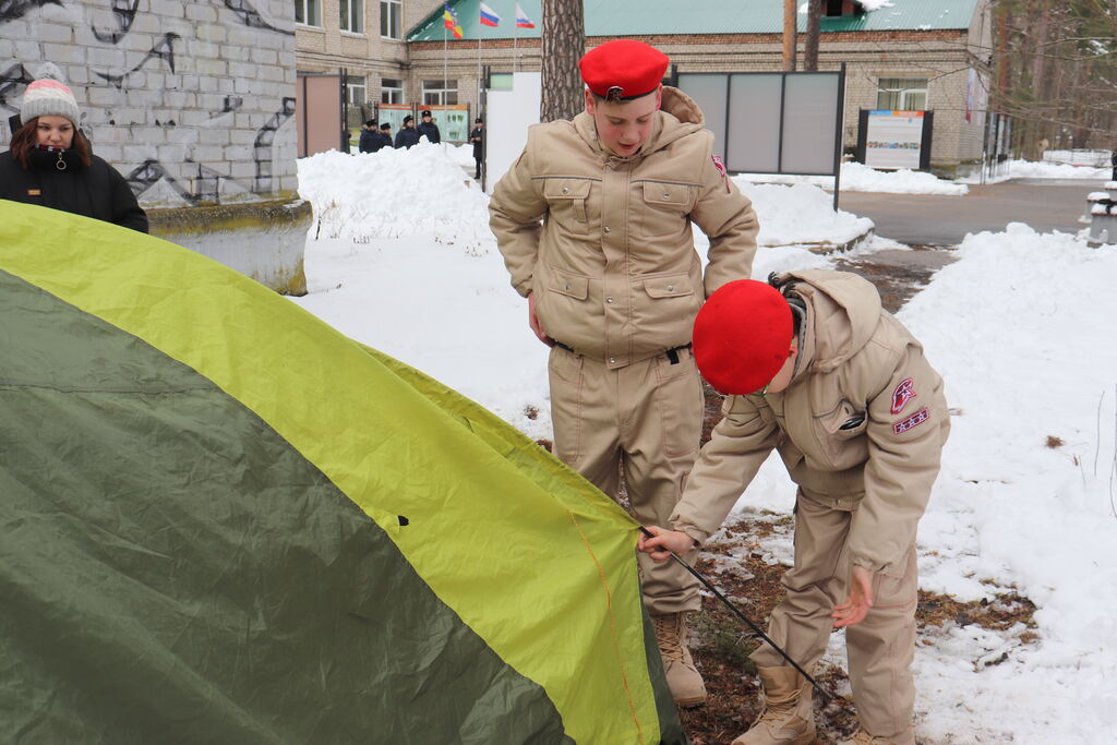 - Военизированная эстафета включала в себя несколько этапов: физическая подготовка, переправа, метание гранаты, стрельба из пневматической винтовки, бег по пересеченной местности, бросок конца Александрова и в конце этого этапа команда должна была собрать палатку;