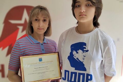 Победителем в этой акции (1 место) от Ленинградской области стала Коверзнева Карина (д/о "Колибри", педагог: Лютова Ирина Николаевна). 23 мая представитель партии ЛДПР Михаил Киселев пришел поздравить Карину и вручить ей диплом и подарок!