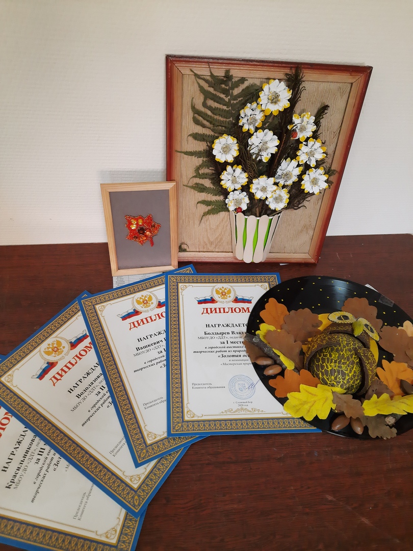 Подведены итоги творческого конкурса-выставки "Золотая осень", организатором которого выступил Центр развития творчества. Обучающиеся Дома детского творчества заняли первые и призовые места.