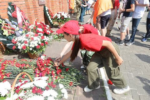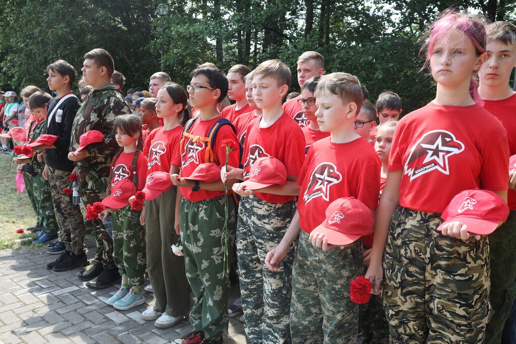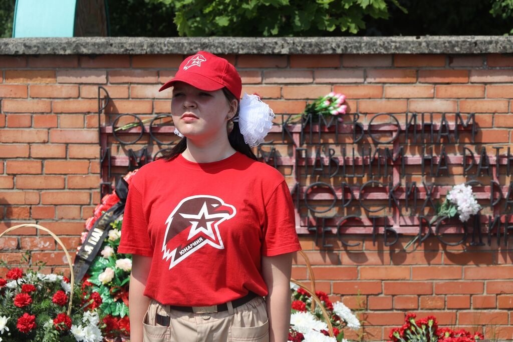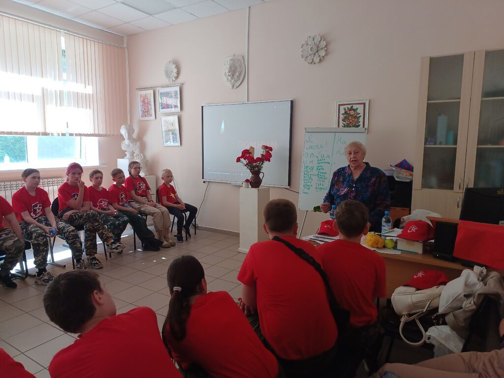 Днем в гости к юнармейцам пришла Антонина Денисовна, ребенок войны. Она рассказала ребятам о жизни во время войны в тылу, как трудились дети, женщины, чтобы помочь фронту. Затем юнармейцы посетили городской митинг, посвященный траурной дате, где возложили гвоздики на мемориал Защитникам Отечества. Закончился день в лагере просмотром фильма "Лошадка для героя" - эмоциональный фильм о героизме и силе русского духа.