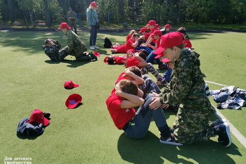 8 день. В юнармейском лагере НВП. Ребята отрабатывали строевой шаг, учились чувствовать и слышать друг друга. Играли в командную игру лазертаг. Ключевое слово "командную": не просто бездумная беготня с оружием по лесу, а тактическая работа против противника, с целью занятия базы. Так же Слюсаренко Василий Анатольевич провел для юнармейцев беседу о правилах дорожного движения, о ловушках на дорогах. Рассказал и показал, как накладывать основные повязки. Двух часов на это не хватило, поэтому в течение смены обязательно будет еще одно занятие по медицинской подготовке. А медсестра девятой школы Вера Алексеевна провела беседу по гигиене.
