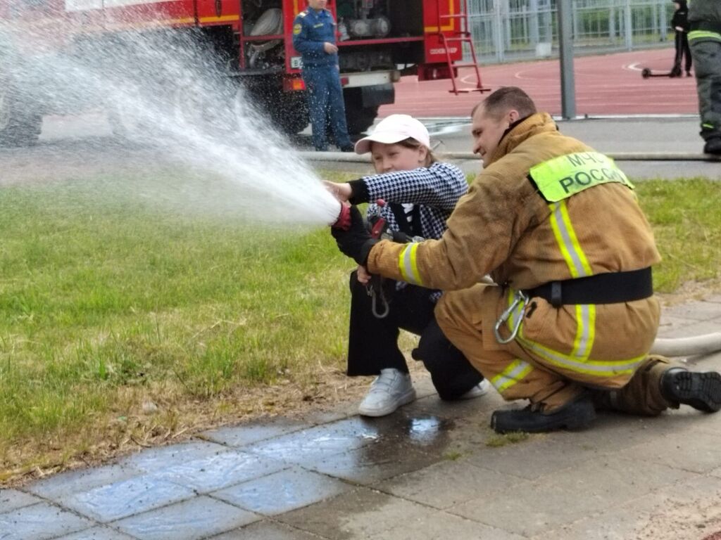 9.06.2023. Сегодня 7-ой день нашей смены и он был посвящен противопожарной безопасности. К нам в гости приехали пожарные на настоящей пожарной машине! Ребята примерили на себя боевую одежду пожарного, учились вязать узлы для страховки, подключать и разворачивать пожарные рукава и тушить с их помощью условное возгорание.