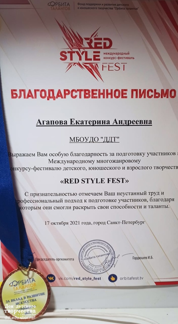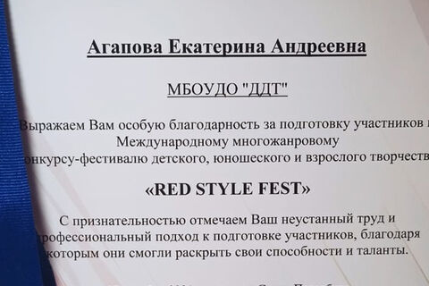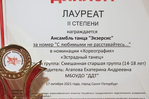 17 октября 2021 года хореографический ансамбль "Экзерис" (педагог: Агапова Екатерина Андреевна) приняли участие в Международном многожанровом конкурсе-фестивале детского, юношеского и взрослого творчества "RED STYLE FEST" г. Санкт-Петербург.