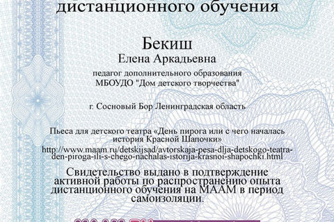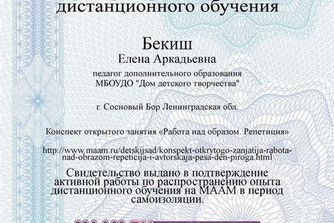 Продолжаем публиковать достижения наших педагогов за время самоизоляции. Это и участие в конкурсах, и публикации своих методических материалов и обучение на курсах повышения квалификации. Вобщем, результаты на лицо...