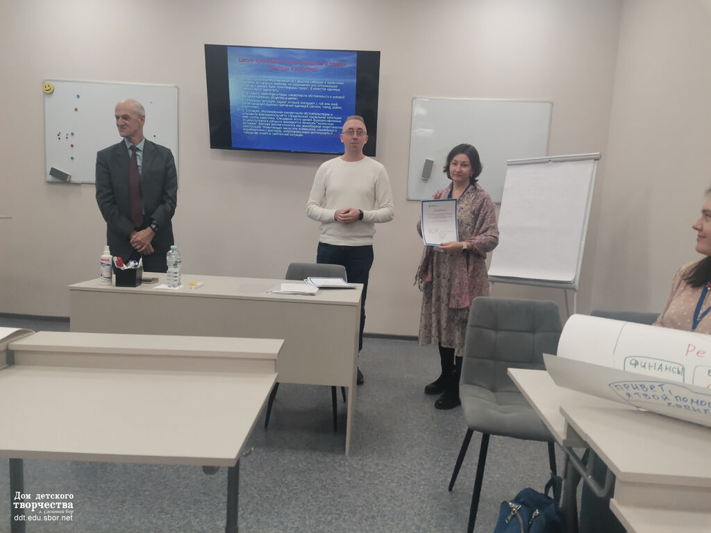 26 ноября педагоги Дома детского творчества Мухина Анна Александровна, Струтинская Анна Валерьевна, Кузнецова Ирина Николаевна посетили обучающий семинар в "Школе креативного проектирования", в зональном учебно-методическом центре Профсоюзов Санкт-Петербурга.