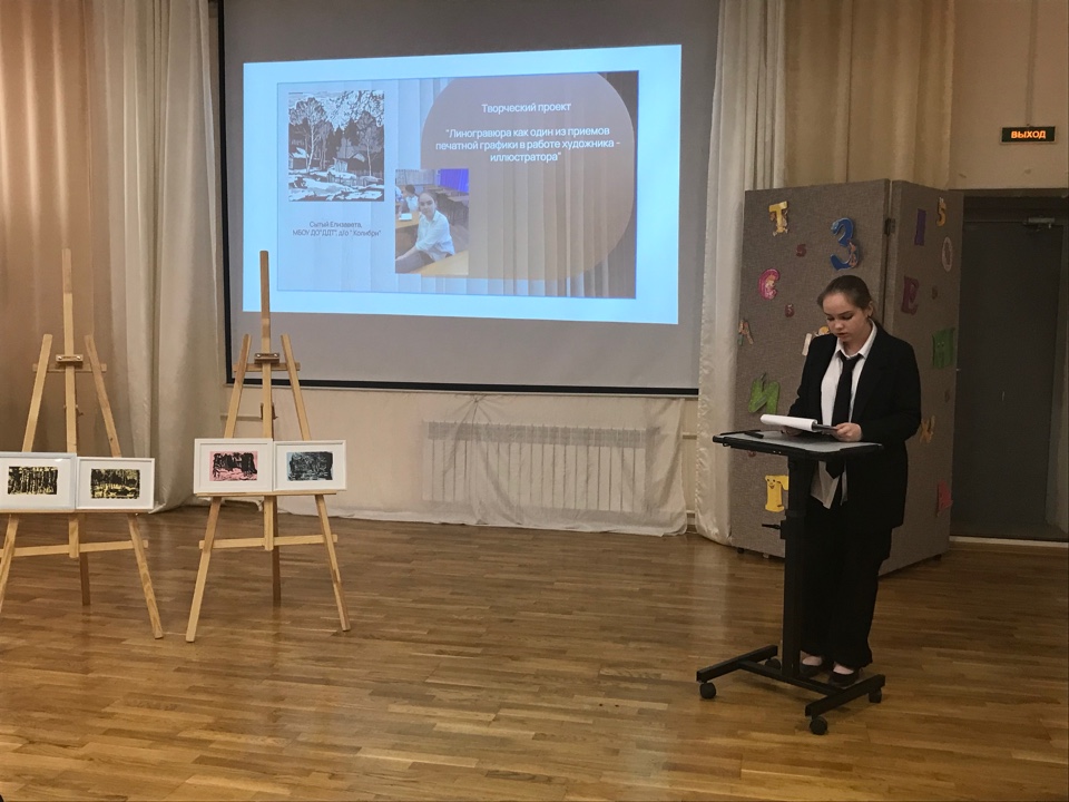 - Сытый Елизавета, 8 класс, «Линогравюра как один из приемов печатаной графики в работе художника иллюстратора» , 8 класс, (МБОУДО «ДДТ»,педагог Лютова И.Н.);