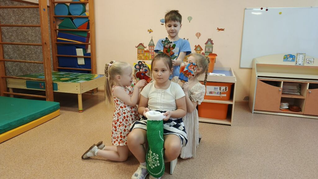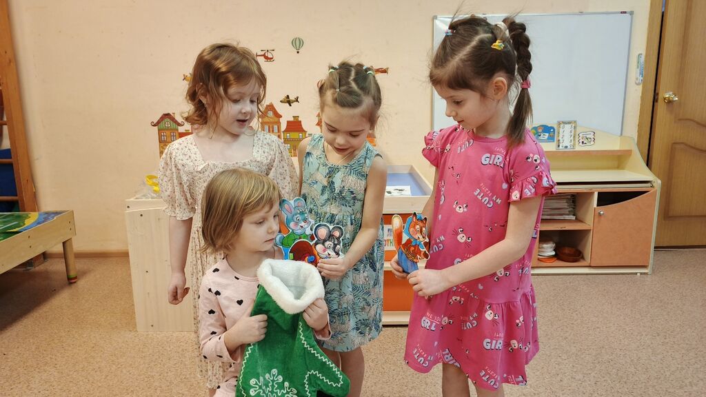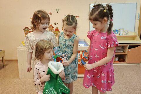 Педагог Анна Александровна Никулина на этой неделе познакомила ребят со сказкой "Варежки" из книги "Сказки на один укус" Юлии Кузнецовой. Дошколята с удовольствием послушали сказку и определили, кому могут принадлежать варежки на иллюстрации.