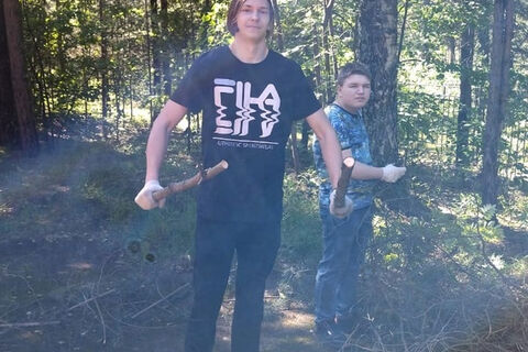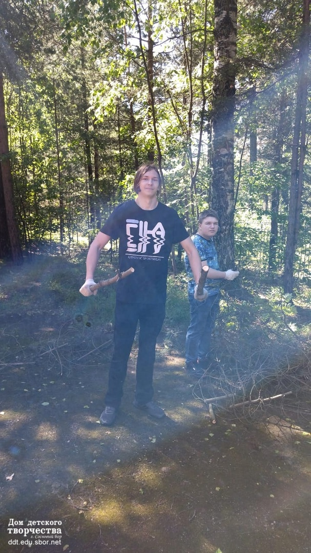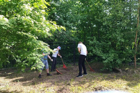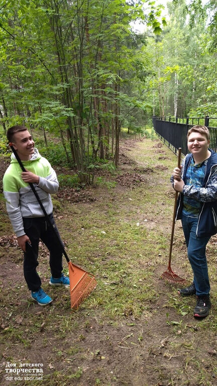 Остальные ребята из трудовой бригады тоже без дела не сидели: привели в порядок территорию Цента патриотического воспитания: убрали старую листву, скошеную траву; привели в порядок зелёные насаждения, клумбы. Возле здания Дома детского творчества на ул. Солнечная сделали новую клумбу с цветами, посадили новые кустарники. В дождливые дни тоже не сидели без дела - обустраивали театральный класс к новому учебному году. Наставляла ребят Мухина Анна Александровна.