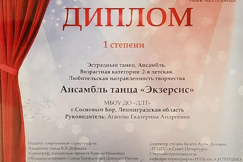 Диплом 1 степени - Ансамбль «Экзерсис»,