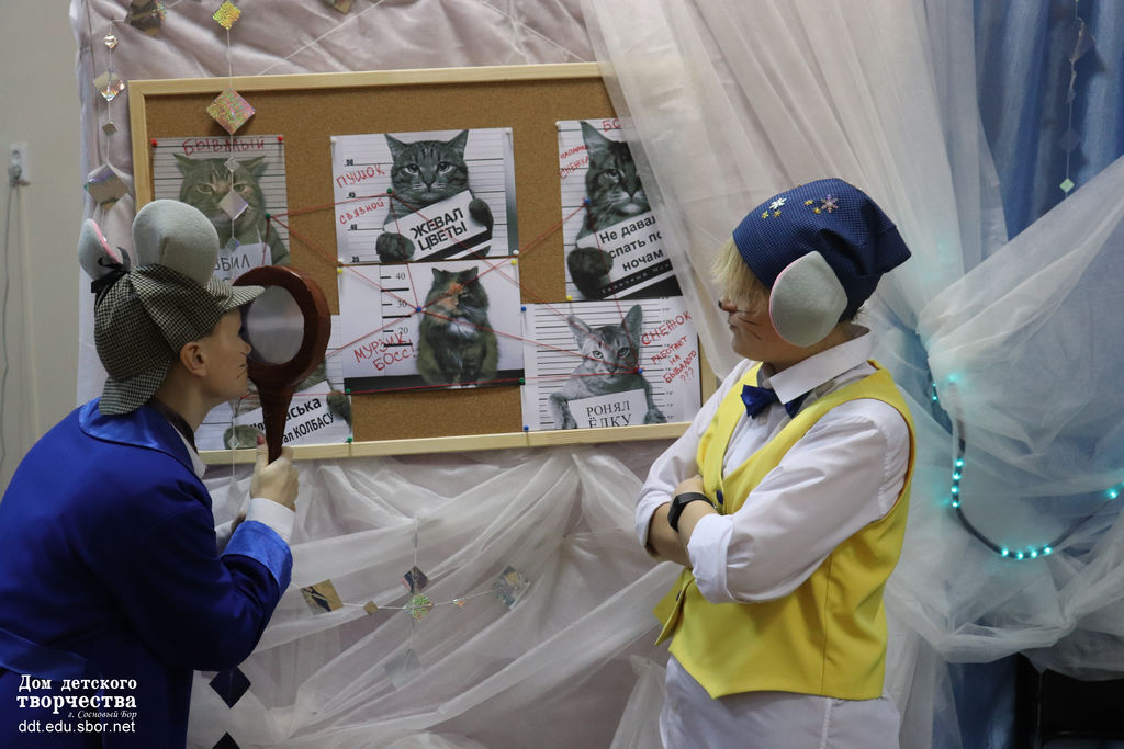 Ответы на эти вопросы знают ребята 1-4 классов, которые приходили в Дом детского творчества на Новогодние театрализованные игровые представления. Великий сыщик Мистер Пик, его верный помощник Мистер Кыш и мышонок Найденыш при помощи метода дедукции и, конечно же, благодаря помощи детей раскрыли запутанное дело.